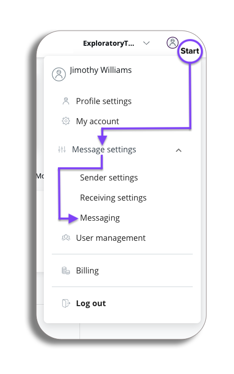 - To get to General message settings select the drop-down option next to your profile, select Message settings and then Messaging.