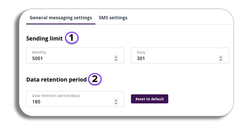 - As an admin, here you will be able to set a limit for the maximum number of messages which your account can send in a given day or month.