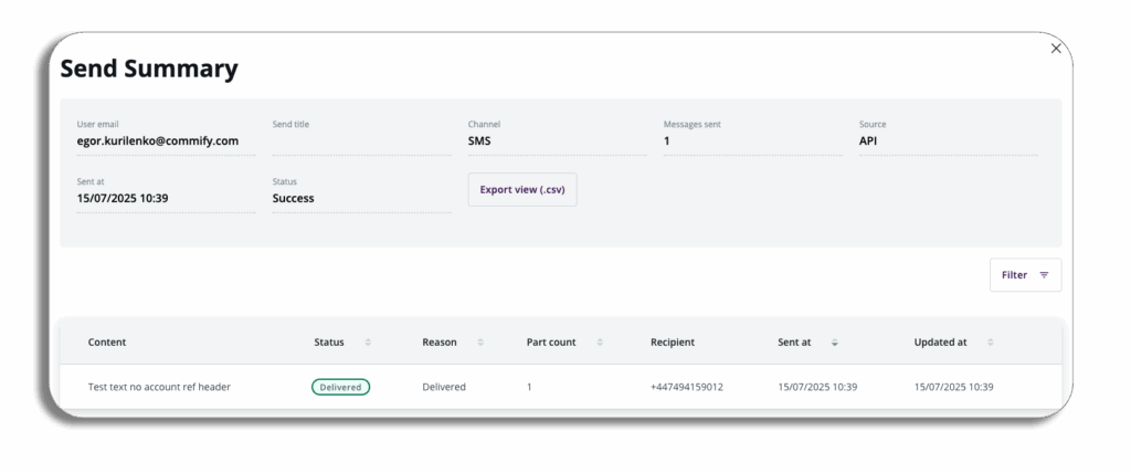 You will also have the option to filter these results and download the bulk send and export as a CSV from here.