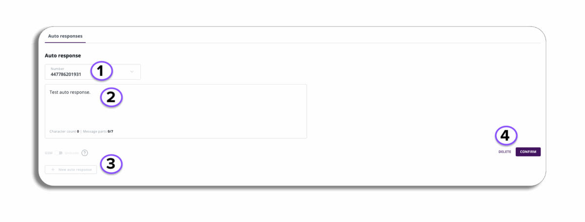 The Auto-response function is an automatic outbound response that you will be able to set for any inbound messages, helping you respond quickly to your customers when you are not available.