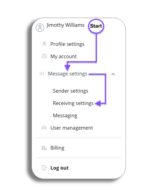 - from the message settings drop-down select Receiving settings