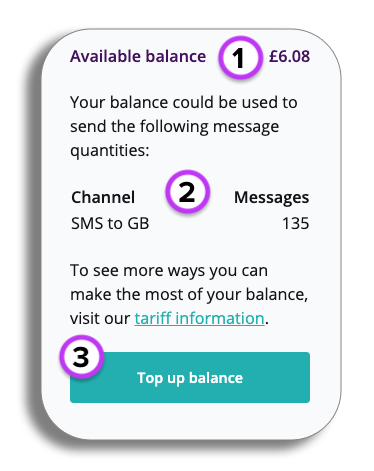 - Available balance – your current balance, you will be able to access your tariffs and top up from the button.