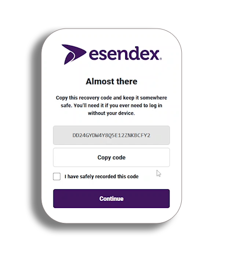 You will have the option to copy the code and once you have safely stored the code, tick the check box confirming this and then press continue.