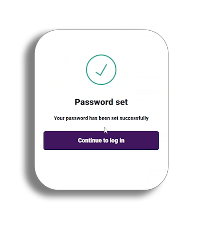 Once you have entered your password confirmation and it will be set, you will then be advised to Continue to log in, and select the button.