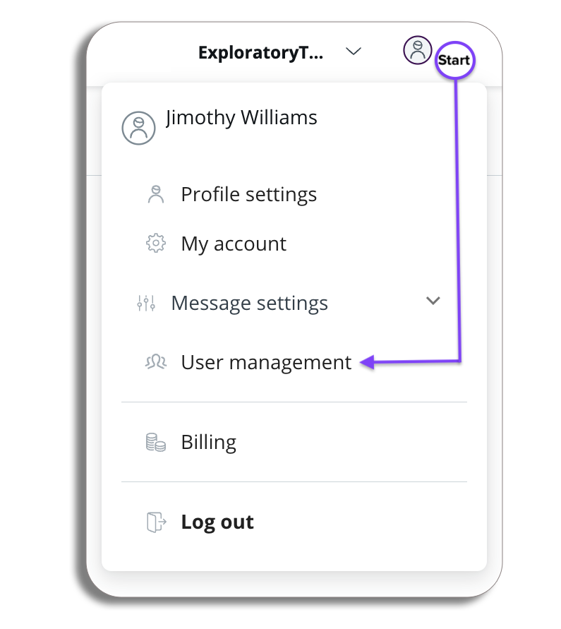 To manage user settings, navigate to your user profile and choose the User Management option.