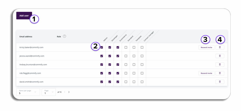 - Role – With your existing users, you can add or remove permissions from their profile by ticking/unticking.